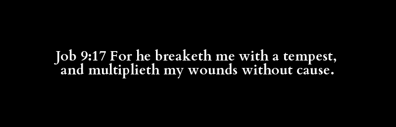 Job 9:17 For he breaketh me with a tempest, and multiplieth my wounds without cause.