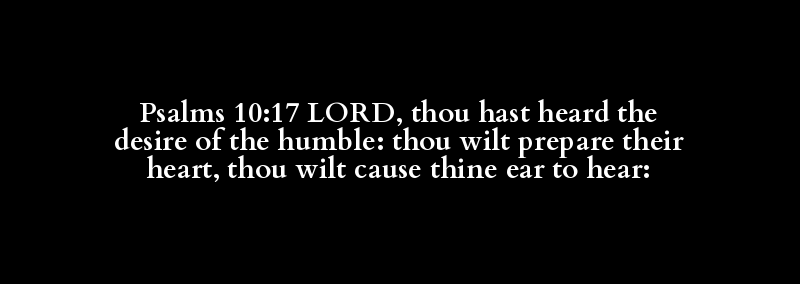 Psalms 10:17 LORD, thou hast heard the desire of the humble: thou wilt prepare their heart, thou wilt cause thine ear to hear: