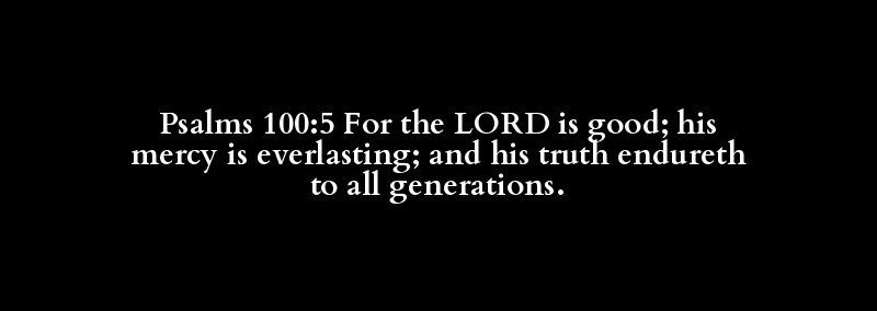 Psalms 100:5 For the LORD is good; his mercy is everlasting; and his truth endureth to all generations.