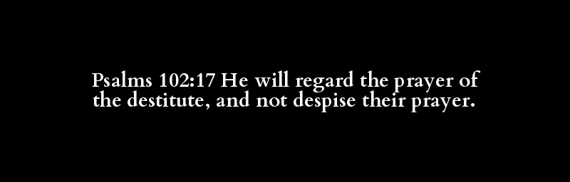 Psalms 102:17 He will regard the prayer of the destitute, and not despise their prayer.