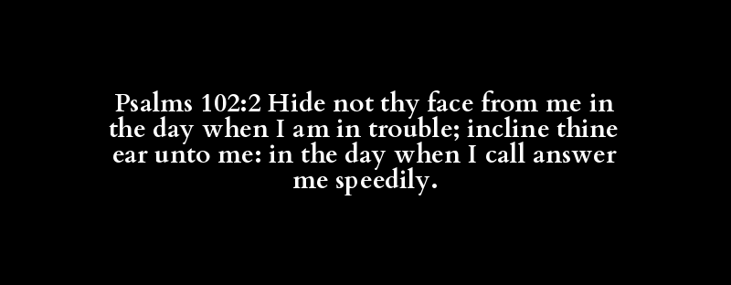 Psalms 102:2 Hide not thy face from me in the day when I am in trouble; incline thine ear unto me: in the day when I call answer me speedily.