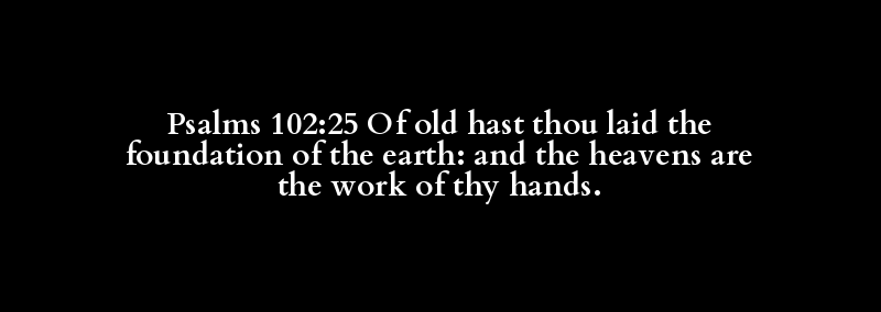 Psalms 102:25 Of old hast thou laid the foundation of the earth: and the heavens are the work of thy hands.