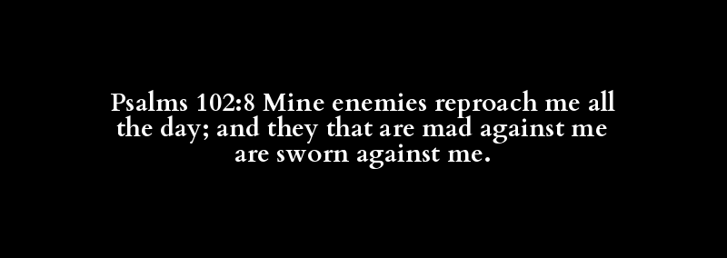 Psalms 102:8 Mine enemies reproach me all the day; and they that are mad against me are sworn against me.