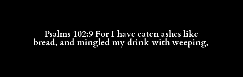 Psalms 102:9 For I have eaten ashes like bread, and mingled my drink with weeping,