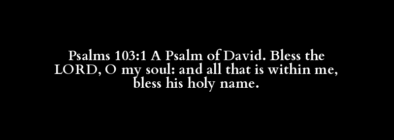 Psalms 103:1 A Psalm of David. Bless the LORD, O my soul: and all that is within me, bless his holy name.