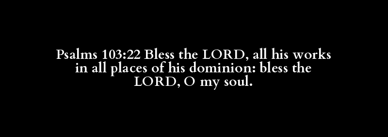 Psalms 103:22 Bless the LORD, all his works in all places of his dominion: bless the LORD, O my soul.
