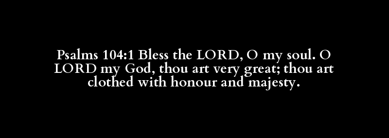 Psalms 104:1 Bless the LORD, O my soul. O LORD my God, thou art very great; thou art clothed with honour and majesty.