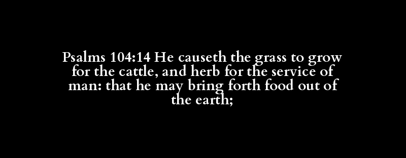 Psalms 104:14 He causeth the grass to grow for the cattle, and herb for the service of man: that he may bring forth food out of the earth;