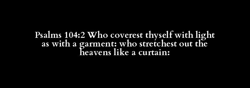 Psalms 104:2 Who coverest thyself with light as with a garment: who stretchest out the heavens like a curtain: