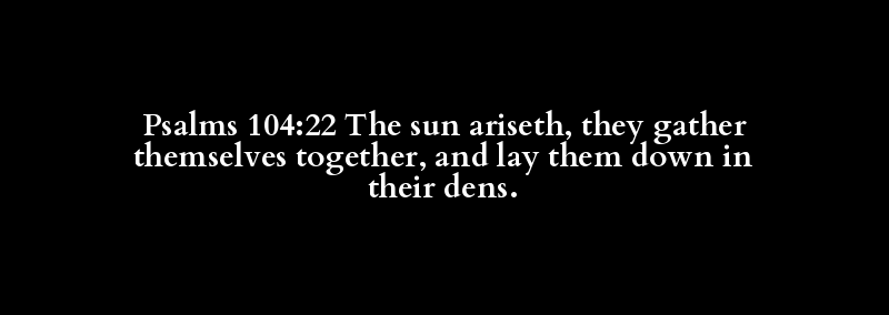 Psalms 104:22 The sun ariseth, they gather themselves together, and lay them down in their dens.