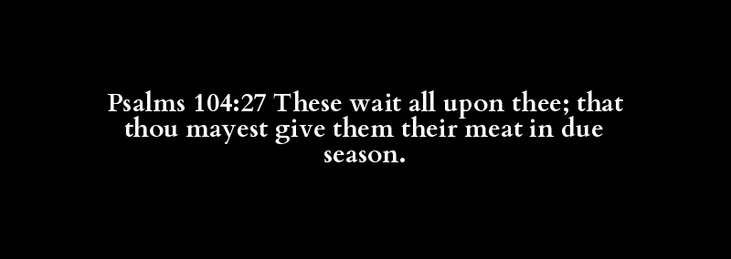 Psalms 104:27 These wait all upon thee; that thou mayest give them their meat in due season.
