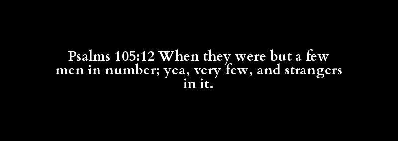 Psalms 105:12 When they were but a few men in number; yea, very few, and strangers in it.
