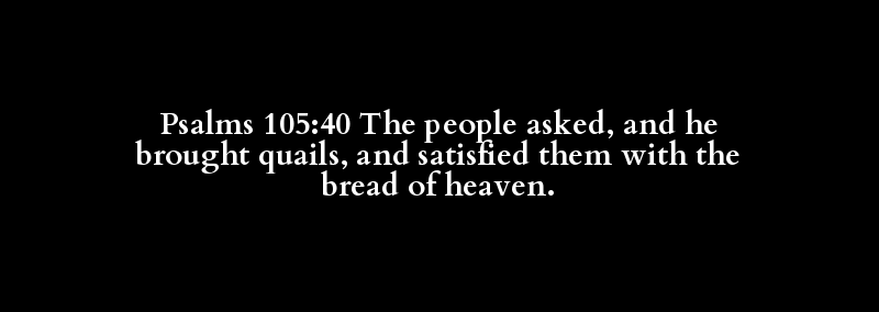 Psalms 105:40 The people asked, and he brought quails, and satisfied them with the bread of heaven.