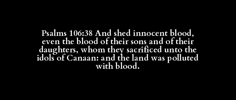 Psalms 106:38 And shed innocent blood, even the blood of their sons and of their daughters, whom they sacrificed unto the idols of Canaan: and the land was polluted with blood.