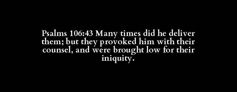 Psalms 106:43 Many times did he deliver them; but they provoked him with their counsel, and were brought low for their iniquity.