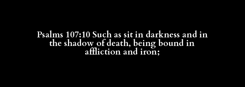 Psalms 107:10 Such as sit in darkness and in the shadow of death, being bound in affliction and iron;