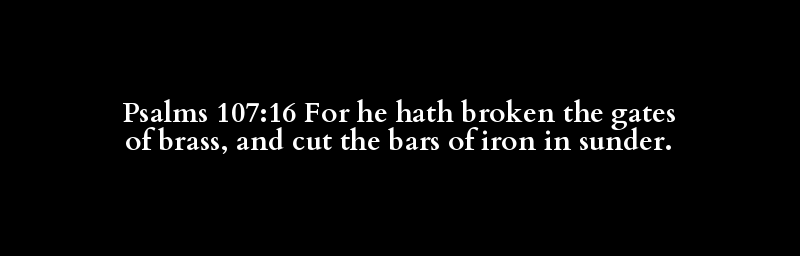 Psalms 107:16 For he hath broken the gates of brass, and cut the bars of iron in sunder.