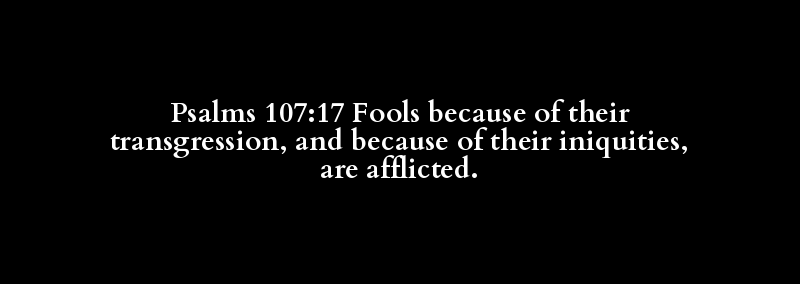 Psalms 107:17 Fools because of their transgression, and because of their iniquities, are afflicted.