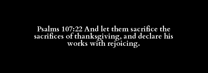 Psalms 107:22 And let them sacrifice the sacrifices of thanksgiving, and declare his works with rejoicing.
