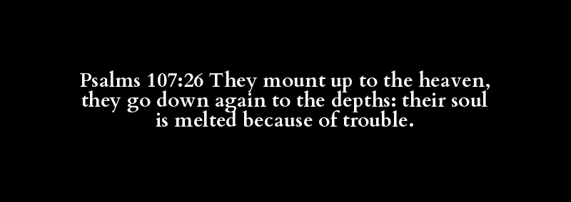 Psalms 107:26 They mount up to the heaven, they go down again to the depths: their soul is melted because of trouble.