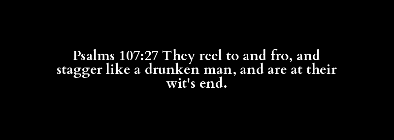 Psalms 107:27 They reel to and fro, and stagger like a drunken man, and are at their wit's end.
