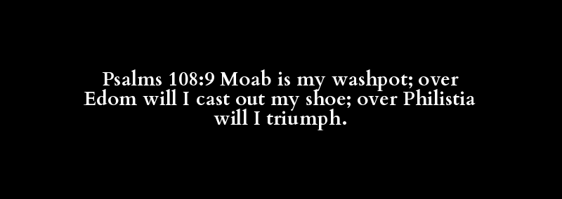 Psalms 108:9 Moab is my washpot; over Edom will I cast out my shoe; over Philistia will I triumph.