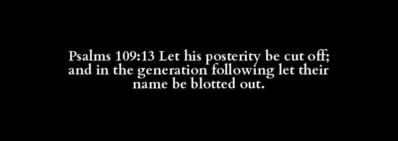 Psalms 109:13 Let his posterity be cut off; and in the generation following let their name be blotted out.