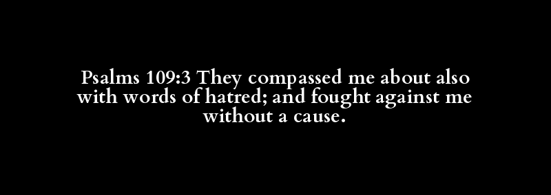 Psalms 109:3 They compassed me about also with words of hatred; and fought against me without a cause.