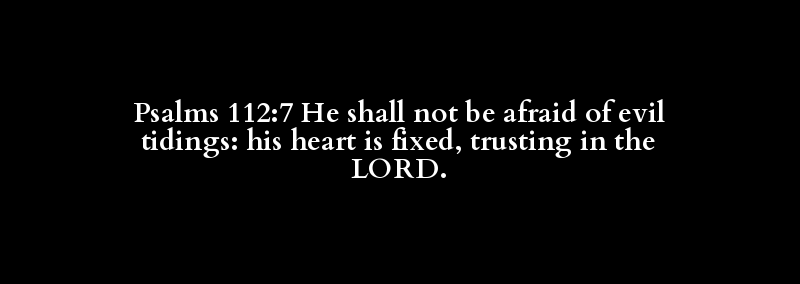 Psalms 112:7 He shall not be afraid of evil tidings: his heart is fixed, trusting in the LORD.