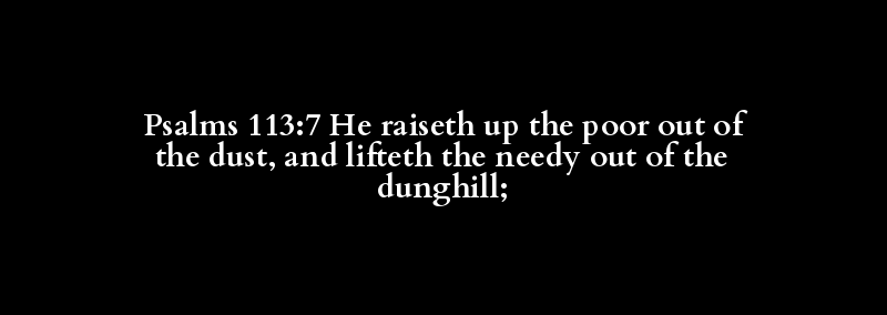 Psalms 113:7 He raiseth up the poor out of the dust, and lifteth the needy out of the dunghill;