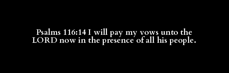 Psalms 116:14 I will pay my vows unto the LORD now in the presence of all his people.