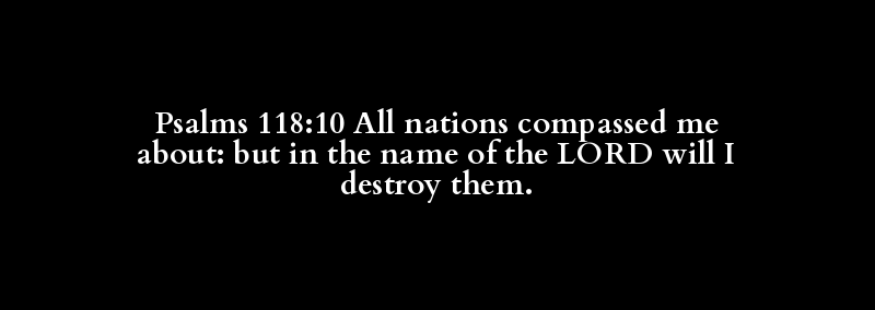 Psalms 118:10 All nations compassed me about: but in the name of the LORD will I destroy them.