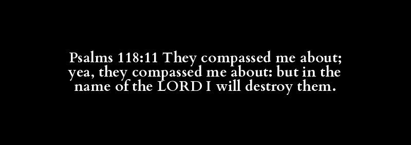 Psalms 118:11 They compassed me about; yea, they compassed me about: but in the name of the LORD I will destroy them.