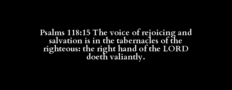 Psalms 118:15 The voice of rejoicing and salvation is in the tabernacles of the righteous: the right hand of the LORD doeth valiantly.