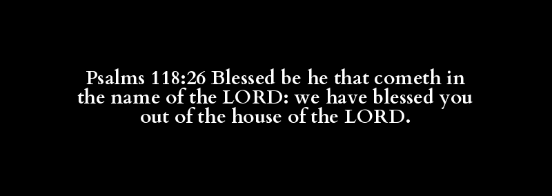 Psalms 118:26 Blessed be he that cometh in the name of the LORD: we have blessed you out of the house of the LORD.