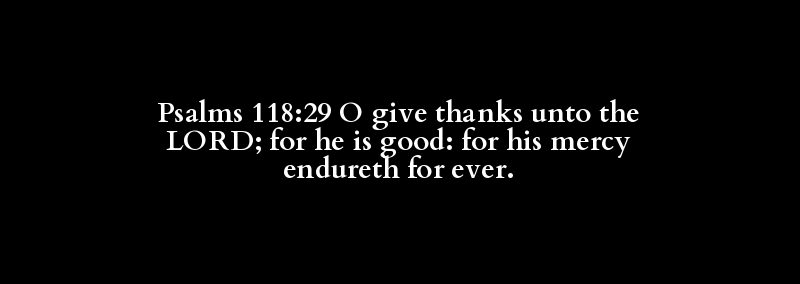 Psalms 118:29 O give thanks unto the LORD; for he is good: for his mercy endureth for ever.