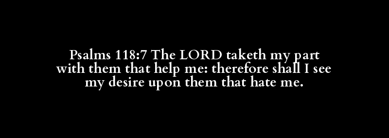 Psalms 118:7 The LORD taketh my part with them that help me: therefore shall I see my desire upon them that hate me.