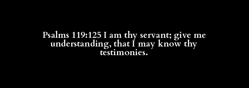 Psalms 119:125 I am thy servant; give me understanding, that I may know thy testimonies.