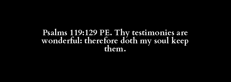 Psalms 119:129 PE. Thy testimonies are wonderful: therefore doth my soul keep them.