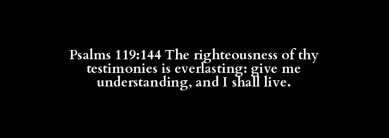 Psalms 119:144 The righteousness of thy testimonies is everlasting: give me understanding, and I shall live.