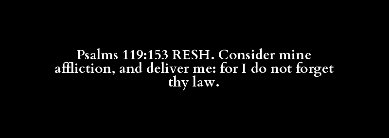 Psalms 119:153 RESH. Consider mine affliction, and deliver me: for I do not forget thy law.