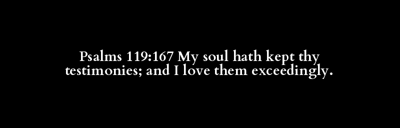 Psalms 119:167 My soul hath kept thy testimonies; and I love them exceedingly.