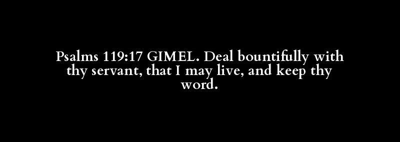 Psalms 119:17 GIMEL. Deal bountifully with thy servant, that I may live, and keep thy word.