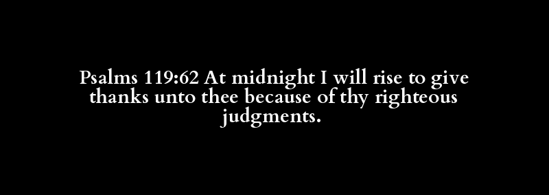 Psalms 119:62 At midnight I will rise to give thanks unto thee because of thy righteous judgments.