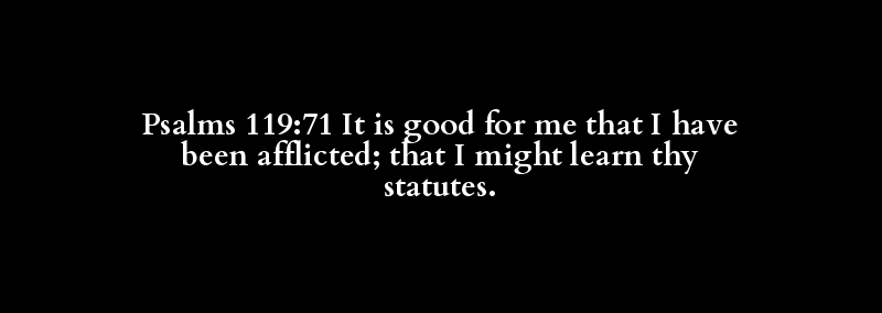 Psalms 119:71 It is good for me that I have been afflicted; that I might learn thy statutes.