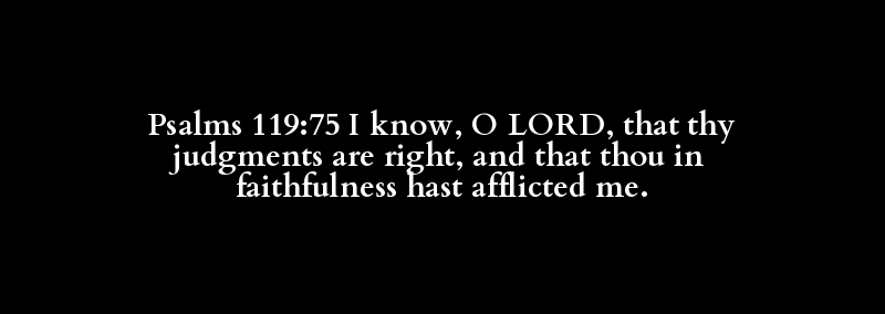 Psalms 119:75 I know, O LORD, that thy judgments are right, and that thou in faithfulness hast afflicted me.