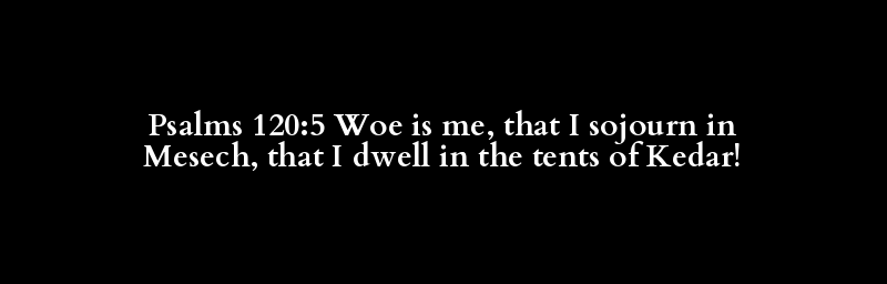 Psalms 120:5 Woe is me, that I sojourn in Mesech, that I dwell in the tents of Kedar!