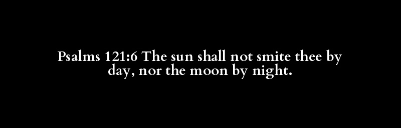 Psalms 121:6 The sun shall not smite thee by day, nor the moon by night.
