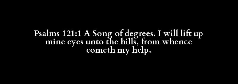 Psalms 121:1 A Song of degrees. I will lift up mine eyes unto the hills, from whence cometh my help.