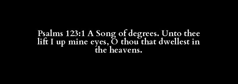 Psalms 123:1 A Song of degrees. Unto thee lift I up mine eyes, O thou that dwellest in the heavens.